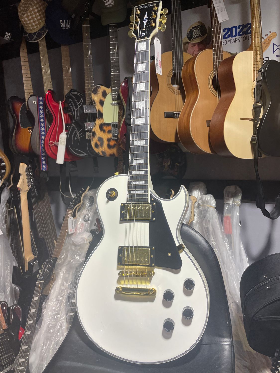 Klassisk LP custom look. Gitarr från det senaste partiet med gitarrer med diverse skavanker. Har någon liten buckla på baksidan och några repor. Se bild. Kommer till lagret i Viksjö och kan levereras inom Sverige tidigast vecka 50
