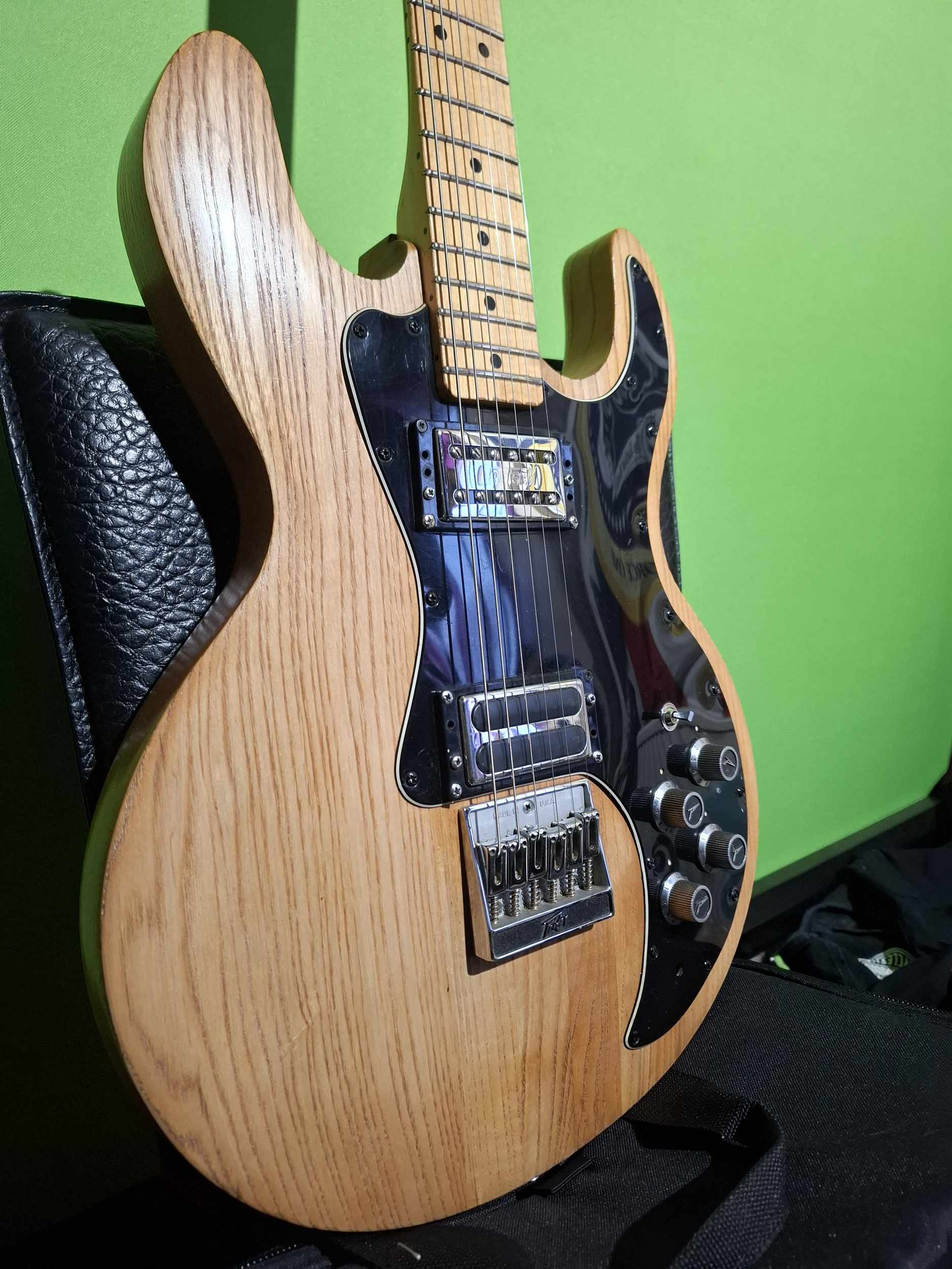 En äkta Peavey T-60 från tidigt 80-tal. Den som känner till gitarrer och Peavey´s historia vet att detta är en mycket robust gitarr. Stallmicken är original men halsmicken har någon bytt till en äldre Gretsch mick. Otroligt fin att spela på men väger rätt mycket. Allt fungerar! Ett samlarobjekt.