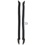 This Hinge Pillar Weatherstrip pair attaches to the body and seals between the A-pillar post and the front section of the door or vent window frame when the door is closed.